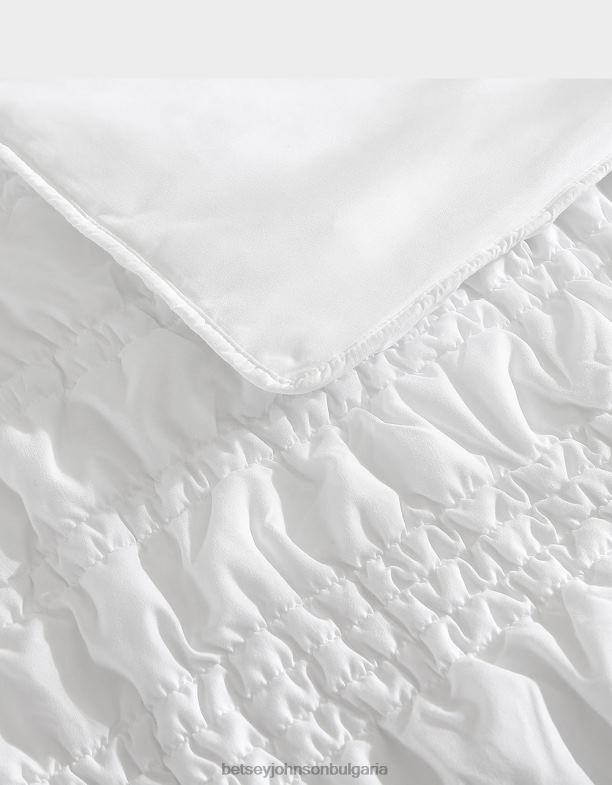 декорът на фалшивия комплект за будоар на Betsey Johnson включва елегантен, лек и уютен модел на волани, идеален за всяка естетика. изработен от 100% полиестер, този юрганът разполага със свиващи се ивици, изградени от еластични ватирани в горната част на леглото, които също влизат в координиращите фалшиви елементи. той е дишащ, с женствен, но спокоен стил плюс изчеткан за допълнителна мекота.