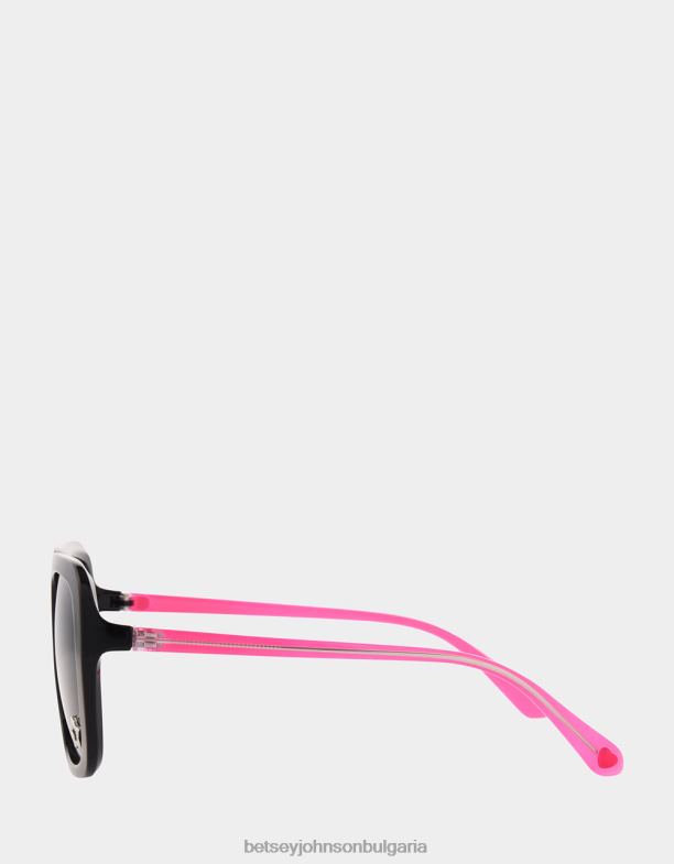 добавете нотка ретро поп и стил към вашата колекция очила с дамските слънчеви очила Betsey johnson in the details. имат черни, квадратни рамки, изработени от пластмаса, със забавни, розови дупки. димните лещи предлагат 100% uva/uvb защита на лещите и са устойчиви на надраскване и удар.