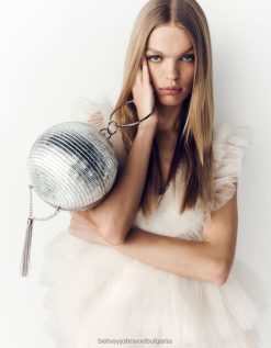 бъдете танцуващата кралица на партито, разтърсвайки тази чанта с форма на диско топка. този съединител със сигурност ще привлече вниманието и ще направи изявление! с ослепителни кристални декорации по цялата повърхност, висящ пискюл и подвижна каишка с верижка, което го прави универсален и лесен за носене.