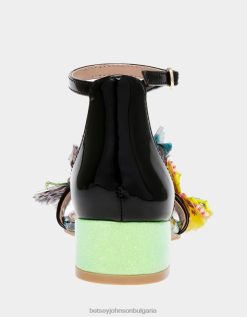 развихрете въображението си, носейки очарователния сандал с токчета. украсени с вълшебни малки апликации на пеперуди на каишката на пръстите и живи щампи, привличащи погледа на всички.