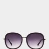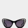 добавете странен стил към колекцията си с дамските слънчеви очила Betsey Johnson petite petals с лавандулови пластмасови рамки в стил котешко око. лилавите димни градиентни лещи предлагат 100% UVA/UVB защита и са устойчиви на надраскване и удар.