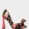 тази помпа се отличава с повдигната платформа и шарка на връзки на високия ток, украсена с флорални мотиви.