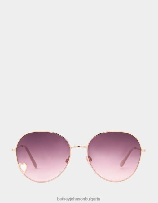 придайте вечен стил, като вземете дамските слънчеви очила Betsey Johnson. имат златни, кръгли рамки с изрязан сърце детайл от метал. опушено розовите градиентни лещи предлагат 100% uva/uvb защита на лещите и са устойчиви на надраскване и удар.