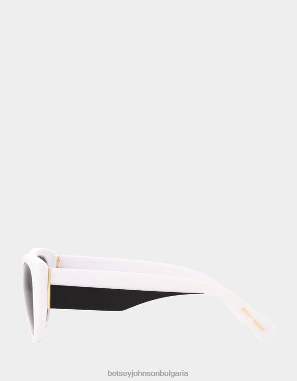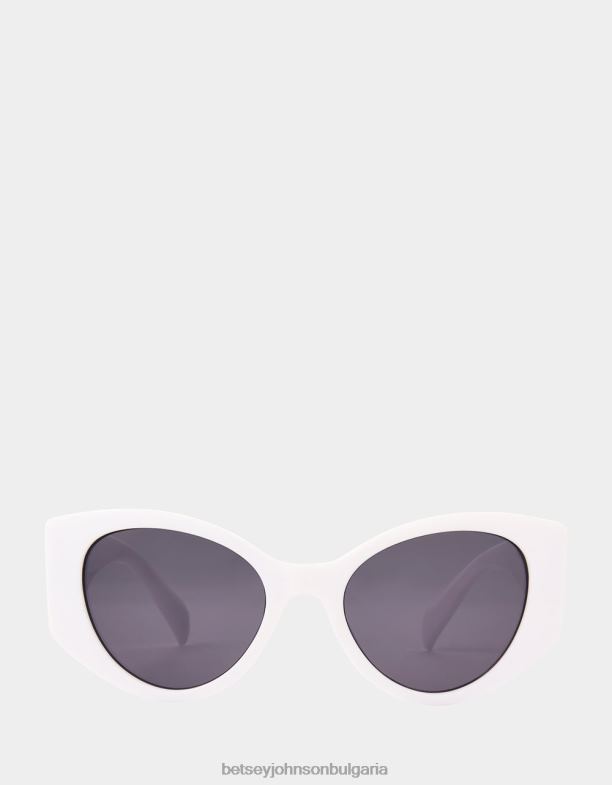 изпъкнете от тълпата с този причудлив, но стилен чифт дамски слънчеви очила Betsey Johnson. те имат бели рамки в стил „котешко око“, направени от пластмаса. димните лещи предлагат 100% uva/uvb защита на лещите и са устойчиви на надраскване и удар.