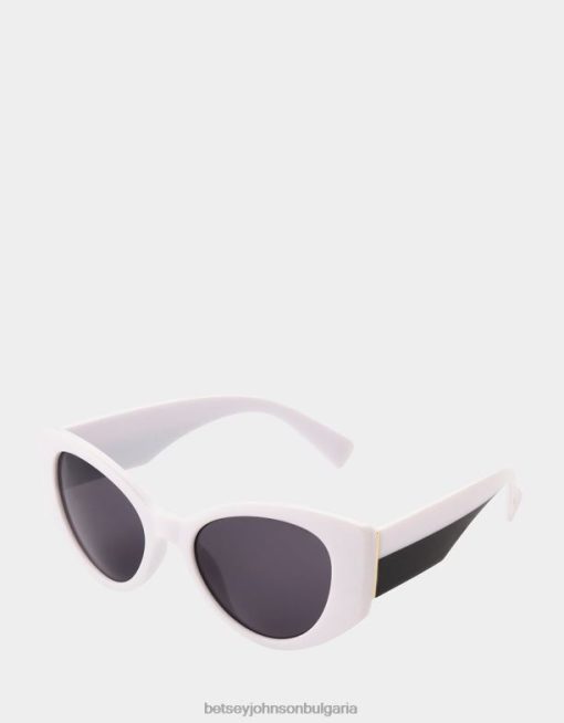изпъкнете от тълпата с този причудлив, но стилен чифт дамски слънчеви очила Betsey Johnson. те имат бели рамки в стил „котешко око“, направени от пластмаса. димните лещи предлагат 100% uva/uvb защита на лещите и са устойчиви на надраскване и удар.