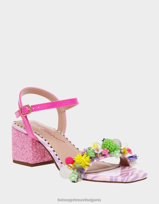 впечатляващите флорални апликации добавят елегантност към този стилен сандал, който се отличава с бляскава блокова пета за моден външен вид.