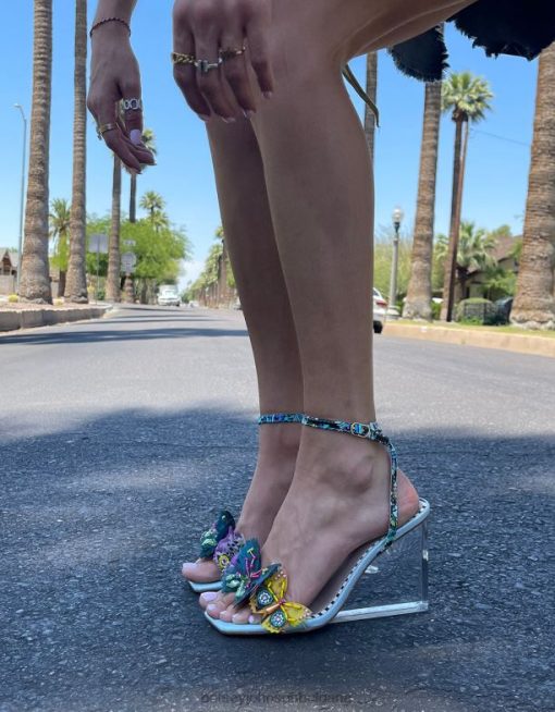 влезете в модата с нашите очарователни прозрачни клиновидни токчета Kynlee. украсата с пеперуди с мъниста върху каишката на пръстите добавя магическо докосване, докато прозрачната пета осигурява модерно елегантно повдигане.