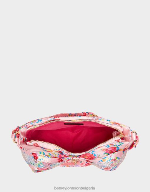- сатениран текстилен корсет с флорални щампи с декорации от кристали