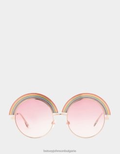 блестят като слънцето в Betsey Johnson върху дамските слънчеви очила Rainbow. те имат златни, нови дъгови рамки, направени от метал. розовите градиентни лещи предлагат 100% uva/uvb защита на лещите и са устойчиви на надраскване и удар.