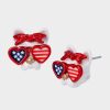 висящи обеци с елегантна дълга връв за уши с минимални камъни и празнична червена, бяла и синя талисманска фуния от сладолед. обеци, вдъхновени от четвърти юли, се затварят с овчарска кука. изработени от полиран метал, стъкло и пластмаса.