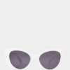 лесно се чувствате лъскави и стилни с дамските слънчеви очила betsey johnson proof positive. те имат розови рамки в стил котка, изработени от пластмаса, с прецизни детайли, гравирани в слепоочията за допълнителен усет. димните лещи предлагат 100% uva/uvb защита и са устойчиви на надраскване и удар.