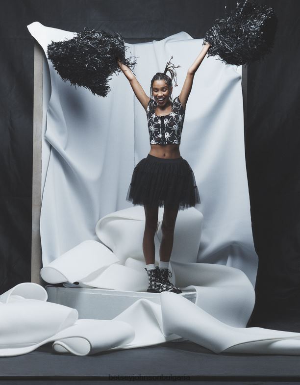 80th bash изрязана горна част с буф ръкав Черно бялаBetsey Johnson Жени облекло B002P291