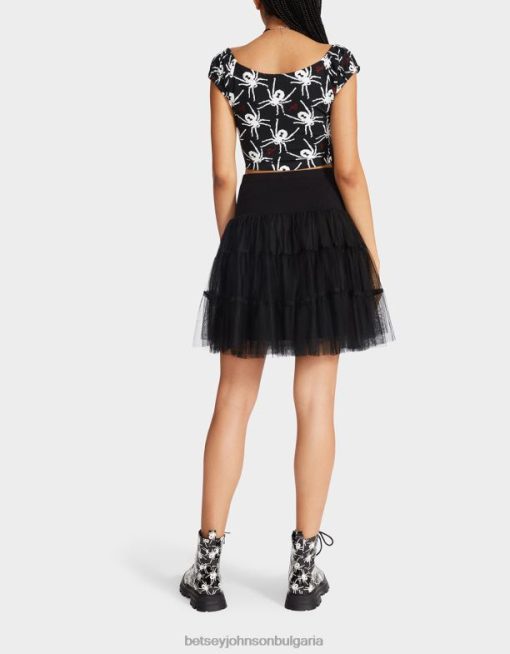 80th bash изрязана горна част с буф ръкав Черно бялаBetsey Johnson Жени облекло B002P291