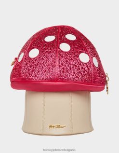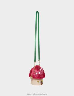 влюби се в кича love you so mush чанта за през рамо с гъби. тази блестяща чанта с форма на гъба се отличава с горна част, украсена с кристали, с пленителни апликации отстрани и цип с форма на пеперуда в горната част.